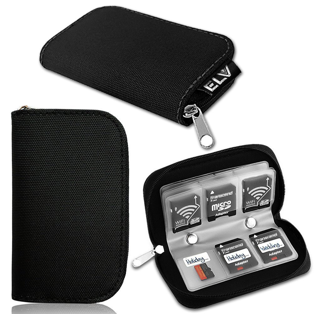 Elv Portable Memory Card Storage Wallet Premium Quality Protective 22 Slots Sd Card Carrying Case,Black